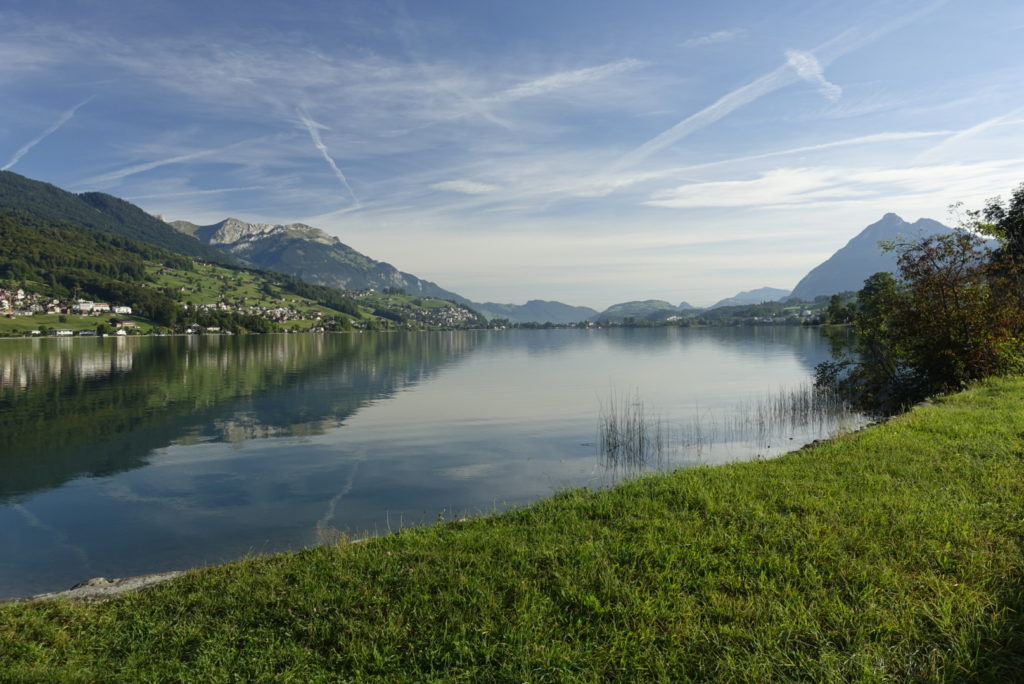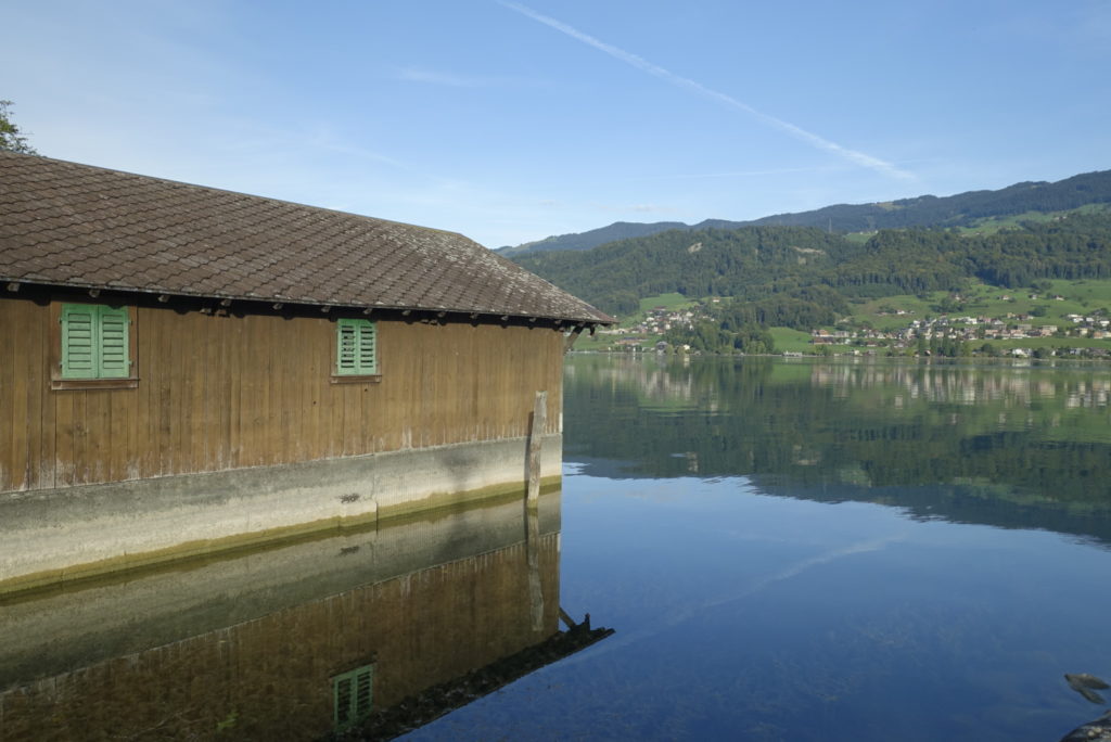 J’ai dormi à Giswil, après une nuit epouvantable à attraper araignées et moustiques, je prend le train pour Sachseln, là où j’ai adopté mon chemin hier, puis direction Giswil,mais à pied cette fois ! Et j’admire un lac aux reflets magnifiques…