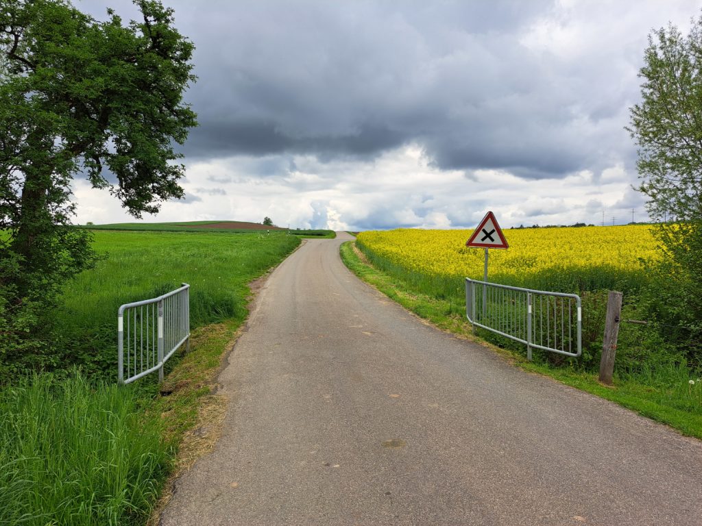 et c’est parti. Par des forêts, des villages et parfois sous la pluie… les paysages se succèdent…